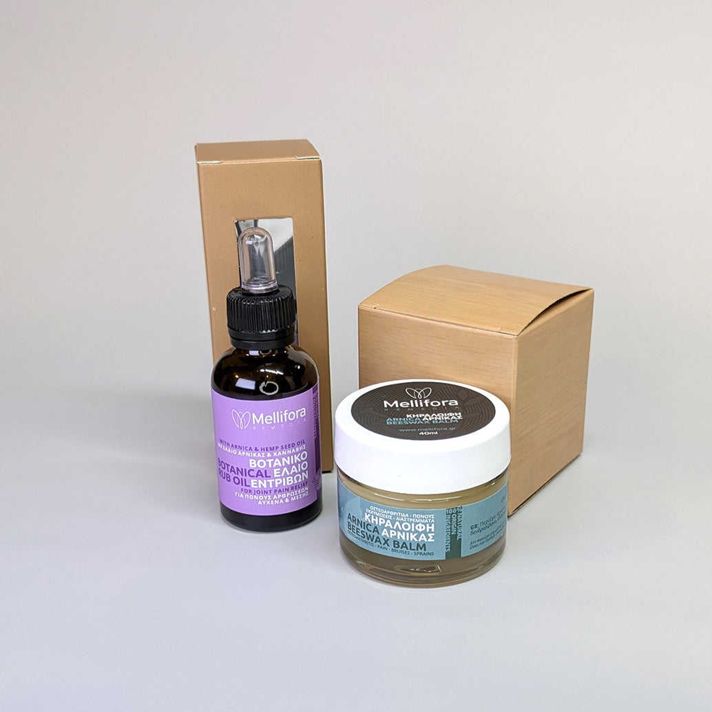 Σετ δώρου κατάλληλο και για τους ανθρώπους σου που υποφέρουν: 30ml Βοτανικό έλαιο εντριβών + Κηραλοιφή Άρνικας.